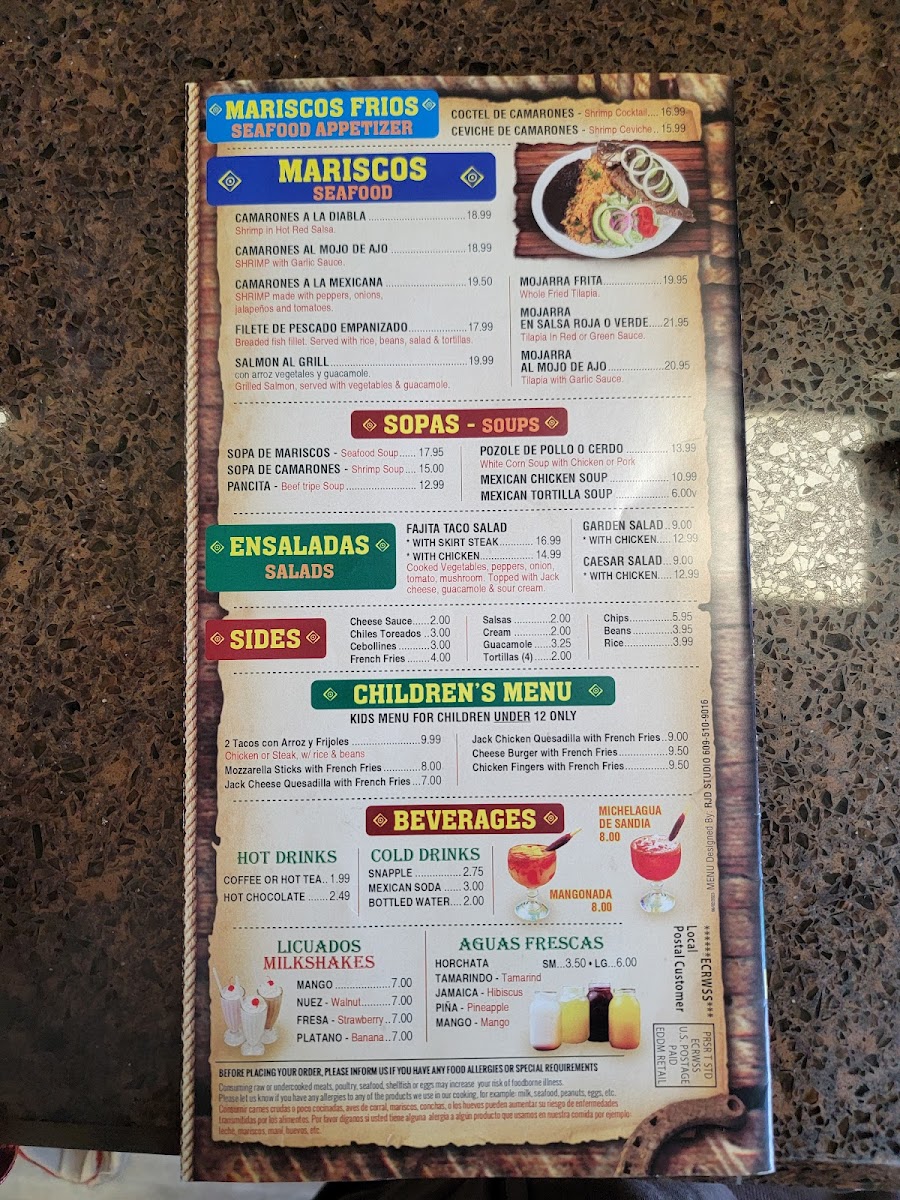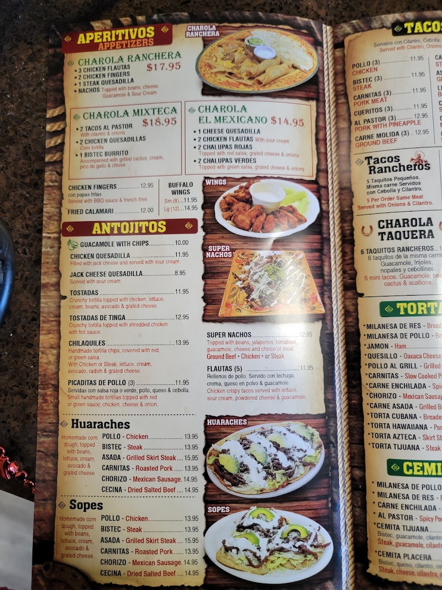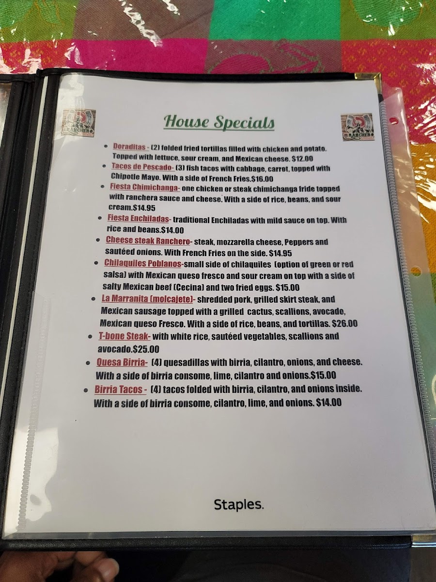 El Ranchero Mexican Restaurant offers a wide variety of flavorful dishes, providing a true taste of Mexican cuisine. Their menu features several standout options like Carne Asada Huaraches, Pollo Huaraches, and Cecina Huaraches, all offering a perfect combination of meats and savory toppings. For seafood lovers, there are options like Mojarra En Salsa Roja O Verde, Mojarra Frita, and Camarones Al Mojo De Ajo. If you're in the mood for something more hearty, their Molcajetes like the Molcajete Ranchero Con Camarones or Molcajete Marisquero are a must-try. The restaurant also has delicious Tex-Mex rice bowls such as the Steak Tex Mex Bowl and the Pollo Tex Mex Bowl. Tacos are a highlight as well, with choices like Lengua Rancheros and Pollo Rancheros for an authentic experience. For those craving a sandwich, the Torta Carne Asada and Torta Hawaiiana are delicious choices, while the Burrito Primavera Pollo and Burrito Primavera Bistec offer great options for burrito lovers. A variety of beverages like Mango Milkshake, Horchata Rice Drink, and refreshing Mexican Soda complement the meals perfectly. Don’t forget to save room for dessert, with tempting options like Pumpkin Spice Tres Leches and Churros With Ice Cream to end the meal on a sweet note. With so many flavorful choices, El Ranchero offers something for everyone!